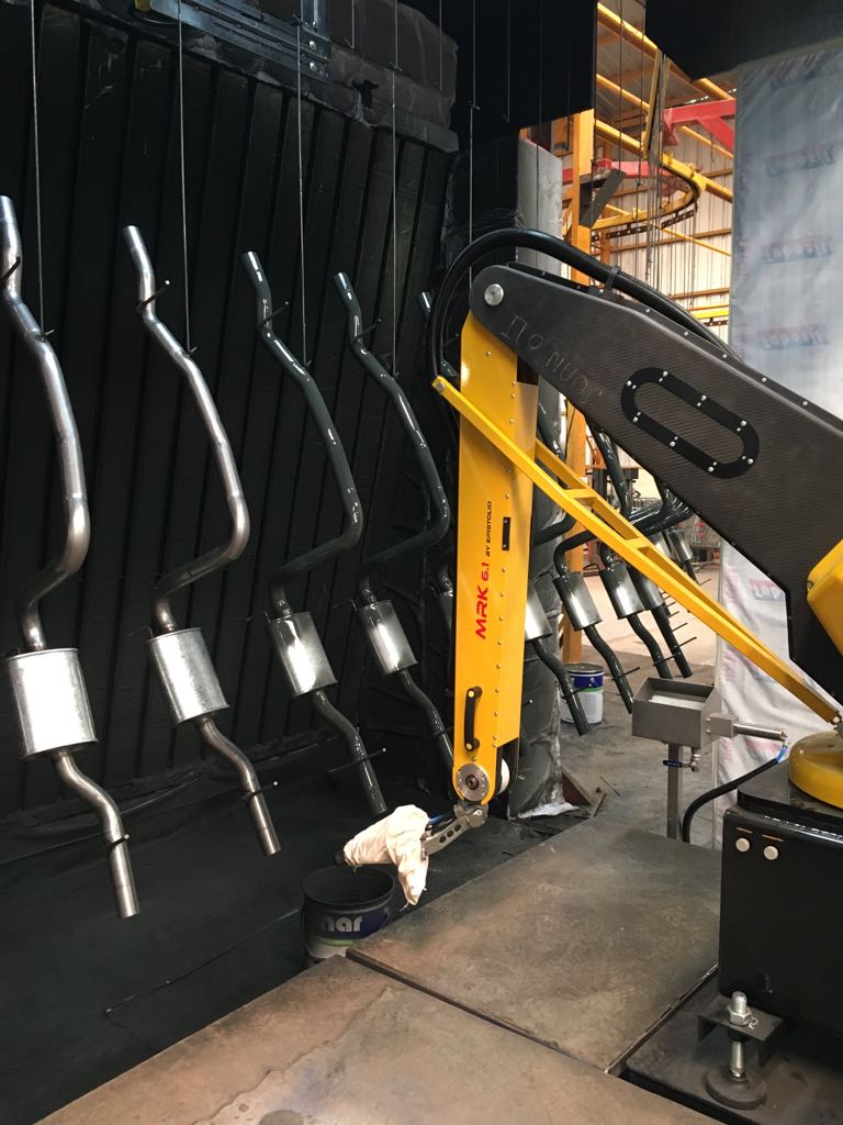 赛摩艾普机器人可完成对喷涂机器人的设计并对相关产品提供定制化解决方案,:如汽车轮毂、排气管、铝塑、五金等可以悬吊方式的喷涂的相关产品。